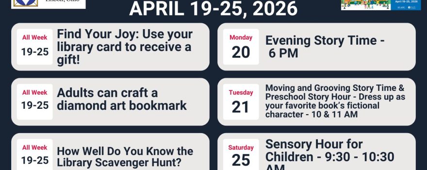Celebrate National Library Week at the Lepper Library April 19-25! Find Your Joy at the Library! The Library offers something for everyone to enjoy. Come in and find something that brings you joy!