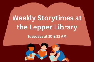 Children and their Caregiver are invited to our weekly Storytimes on Tuesdays at 10 and 11 AM. Come sing songs, listen to stories, play, do arts and crafts together for bonding time with your little ones. Older siblings are welcome to join in also.